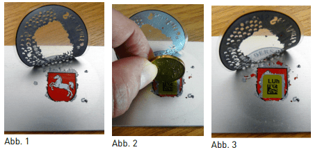 Sie müssen die Folie von Aufkleber abziehen und anschließend den Kennzeichencode langsam mit einer Münze mit wenig Druck frei rubbeln.